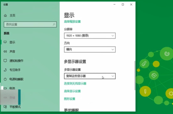 先用连接插口把投影仪和电脑连接在一起,此时等待几秒之后刷新电脑页面,右键桌面之后点击显示设置,选择检测之后点击复制这些显示器或者点击扩展这些显示器,保存设置之后就可以连接,同时根据投影仪状态调整位置和方向。