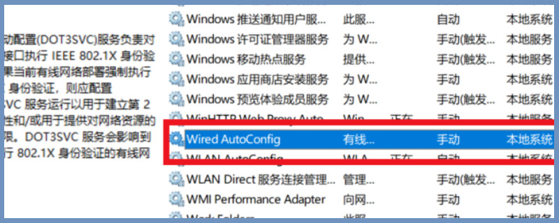 3、在新弹出的“服务”窗口中点击“服务”栏目,点击“启动此服务”后找到“wired autoconfig”并点击,最后点击左边的“服务本地”,再点击“启动此服务”,刷新电脑桌面后,电脑网络就恢复正常了。