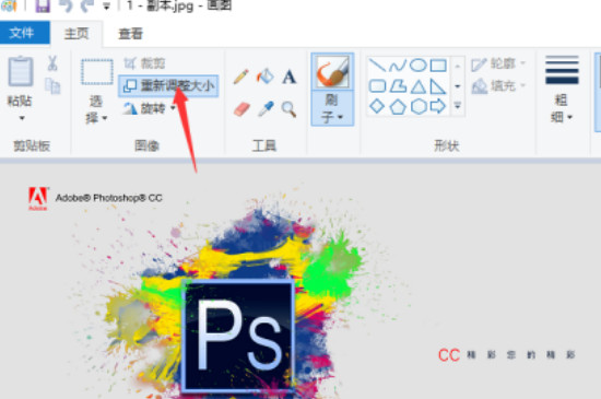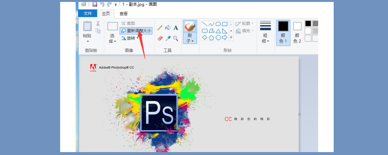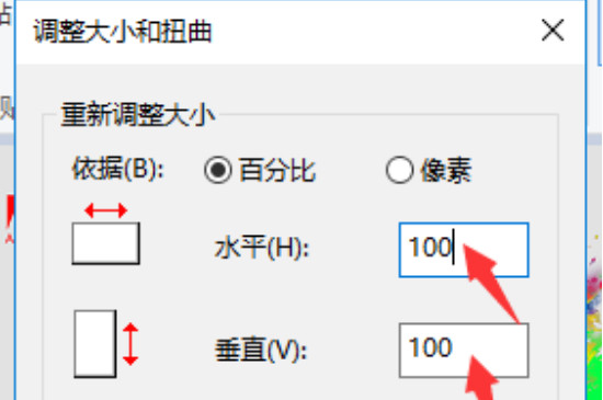 2、进入编辑界面后,找到编辑界面上方工具栏中的“重新调整大小”选项,跳转至“调整大小和扭曲”界面后,之后将里面的数据改为原来的50%。