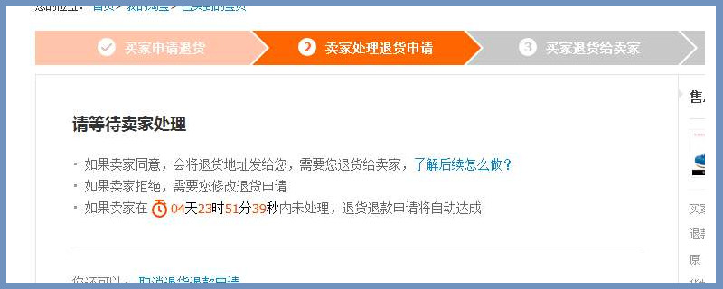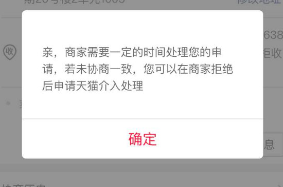 3、若商家拒绝退货退款,可以再次要求淘宝官方客服介入。但是时间拖得越久,退款的补偿也会越难获得。同时需要注意电器类产品在申请退货退款时,可能无法全额退款。