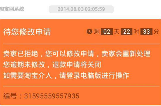 1、出现淘宝上买到翻新机的情况时,如果还没有受到货品,可以在淘宝内找到相应订单,点击订单进入订单详情界面后,再点击界面右下方的“退款”选项并按照提示提交退款申请。