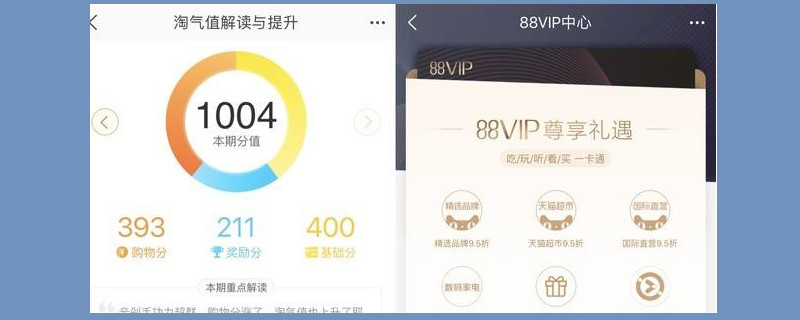 3、向左滑动页面后,最后就可以看到个人的淘宝淘气值。而淘气值可以通过做任务和消费来获取,同时淘气值也可以用来优惠开通VIP或兑换其它优惠权益。