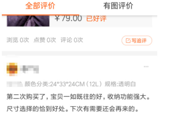 3、每条评价的右下角都会有“写追评”的选项,点击这个选项可以再次对购买过的物品追加评价。此外如果购买了东西还没有评价,系统还会提示评价一下商品。
