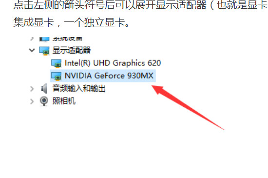 3、打开显示适配器之后,显示适配器栏目下方就会显示显卡的信息。但是需要注意显卡分为两种,一种是集成显卡,另一种是独立显卡。