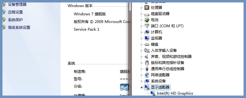 2、进入电脑属性界面后,点击界面左侧的设备管理器,之后下拉设备管理器界面,找到“显示适配器”选项后点击右侧三角按钮就可以查看。