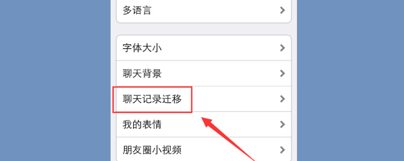 2。点击微信主界面右下角“我”选项,再依次点击“设置、聊天、聊天记录备份与迁移”,之后点击“迁移聊天记录到另一台设备”。