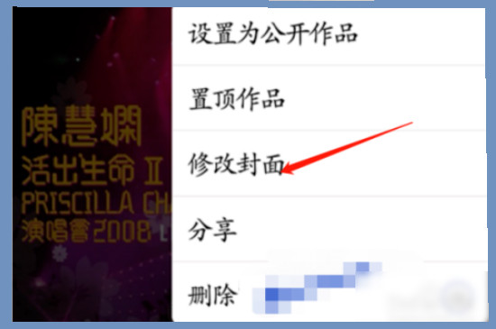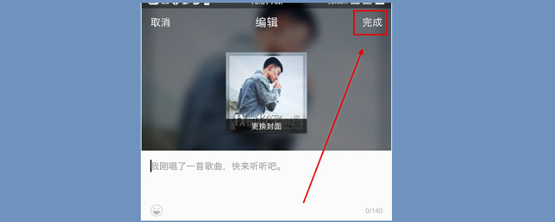 点击编辑之后就会进入歌曲页面编辑的操作框中,这时就可以修改封面和简介。如果作品是未公开的,也可以修改成公开歌曲,修改完后可以分享给其它人看或者将作品置顶。