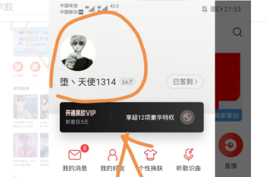 打开网易云app,在主页面登录自己的账号,点击个人主页。