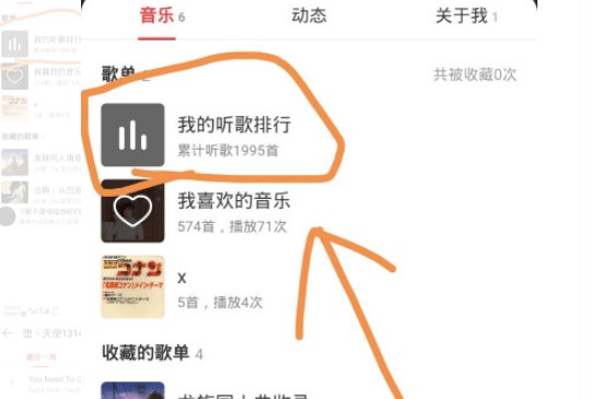 在下拉的界面中可以看见一个听歌排行,点开之后就会显示听歌的次数。