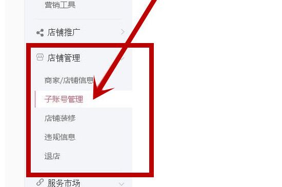 登录成功后在左侧菜单栏的下面找到“店铺管理”,点击“子账号管理”。