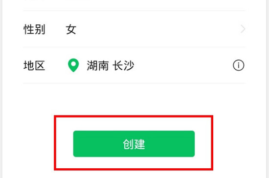 上传头像,填写名字、简介、性别,选择地区。然后点击“创建”就完成了。