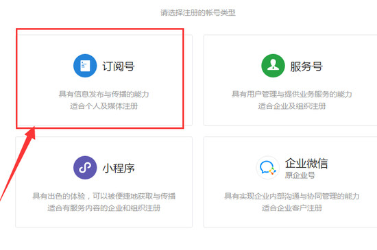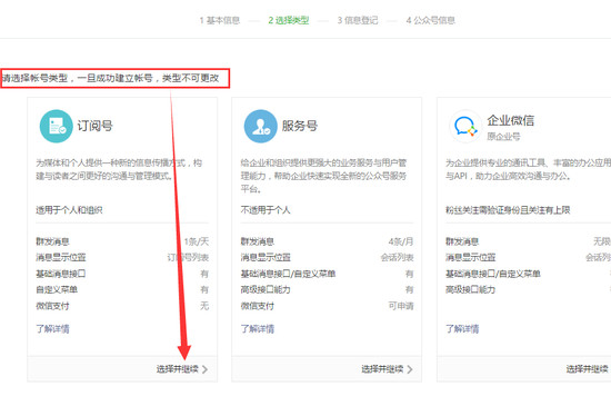 选择帐号类型,点击订阅号下方“选择并继续”,然后选择“确认”。