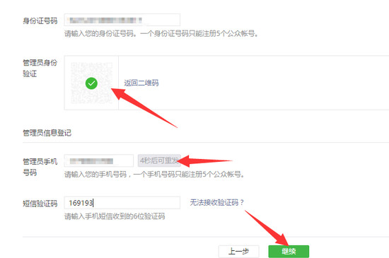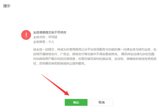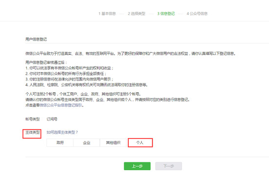 选择主体类型,以个人为例,用手机微信扫描电脑上出现的管理员验证二维码进行验证。
