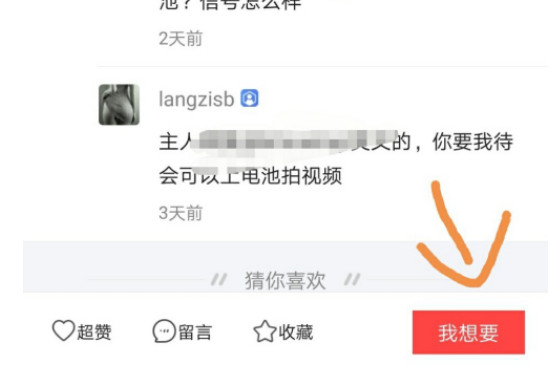 2、在物品详情图片下方有“我想要”,点击后即可和卖家私聊。