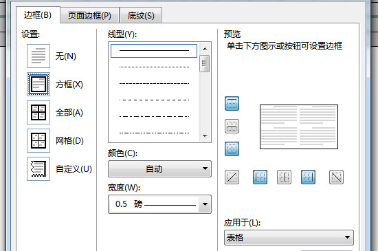 4、在左边选择表格的外框线,设置完成后不要急着点确定,等把宽度和颜色都设置好了再点。