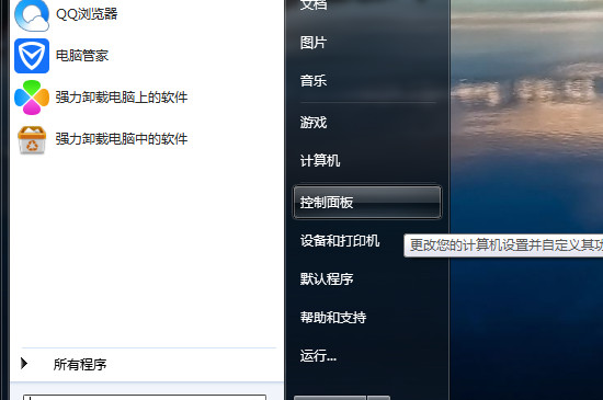 打开电脑,点击电脑左下方的主页面,选择“控制面板”。