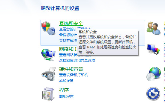 弹出的页面中点击“调整计算机的设置”下方的“系统和安全选项”。