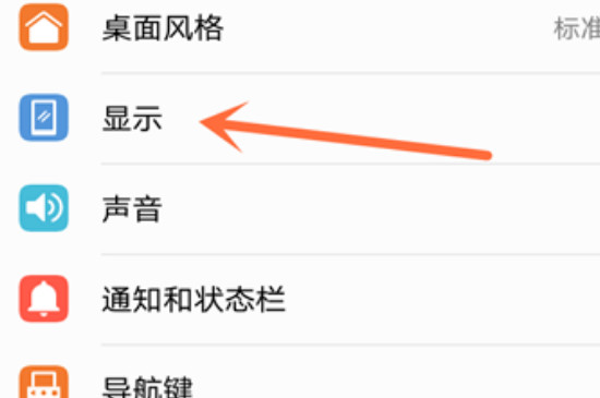 2、然后在设置的界面中找到“显示”这个选项进行点击进入,这时就可以在界面中寻找“字体大小”这一栏。不同的手机在不同的位置,有可能在最下方,可以通过向下滑动手机来寻找。