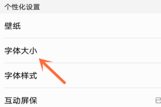3、有一部分的手机,“字体大小”的选项在“个性化设置”里面。所以如果找不到,可以去这“个性化设置”这项中寻找,找到之后打开“字体大小”的选项。