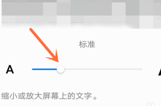 4、进入“字体大小”界面之后,通过滑动最下方的按钮来更改字体大小。一般向左滑动是变大,向右滑动是变小,这样字体大小就调整完成了。