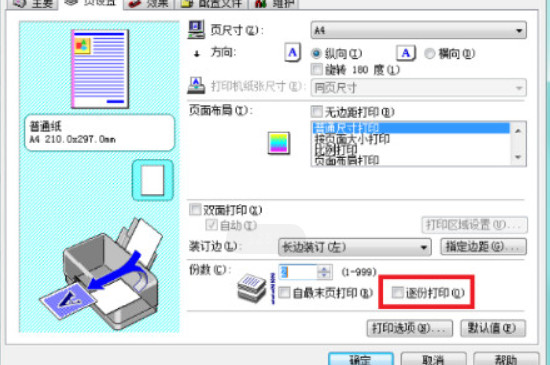 5、在新的工作框中的左下角找到“逐份打印”进行勾选,这时打印出来的多份文件就是按顺序的。