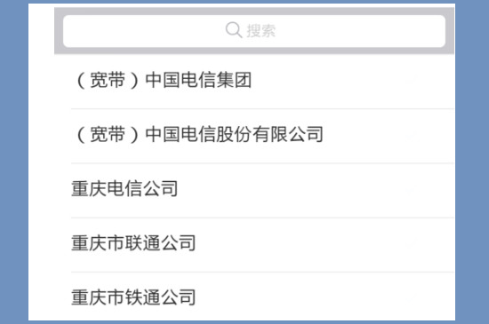 进入宽带页面之后,根据用户办理宽带的情况选择电信集团或者是电信股份有限公司,找到电信公司之后进入系统。