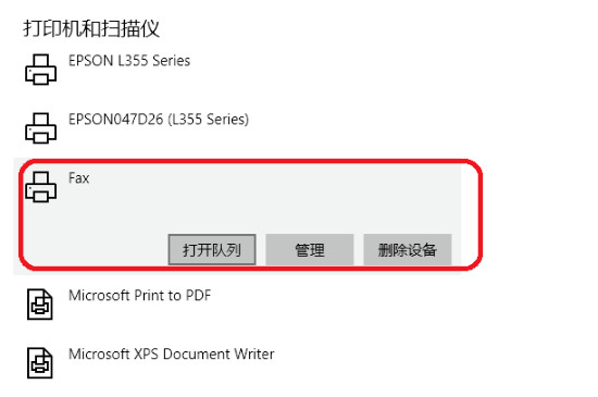 2、在打印机和扫描仪的页面找到Fax,点击Fax下面的打开队列。