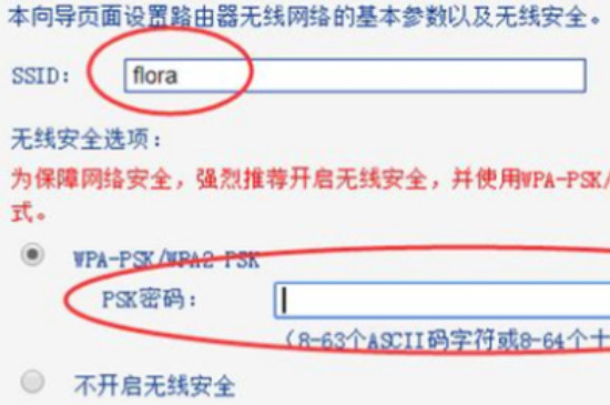 2、显示上图页面后,在SSID这一栏给无线网命名,在设置一个安全性较高的密码。