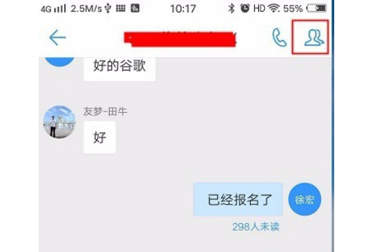 2、点击相应群组进入群聊天窗口后,点击窗口右上角的双人图标进入“群设置”界面。