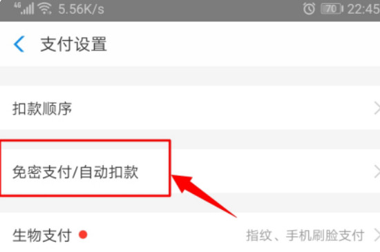 2、进入设置界面后,点击“支付设置”,再点击“免密支付/自动扣款”,之后界面内就会显示所有已经签约且会自动续费的服务。