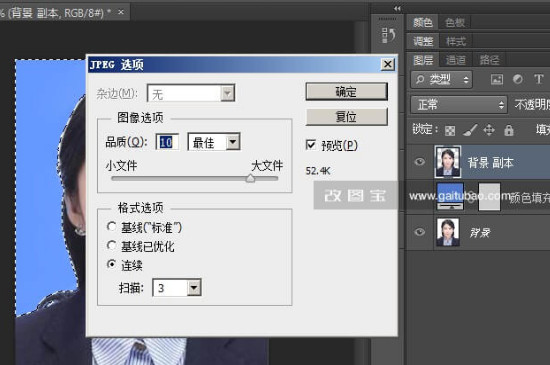 用PS软件打开照片后复制一个图层,再新建一个空白图层并命名,之后用魔术棒工具选择人物头像,按照删除就可以得到背景空白版,最后点击左下方的新建的空白图层,再点击右上方的颜色图标并同时按Alt+Backspace就可以。
