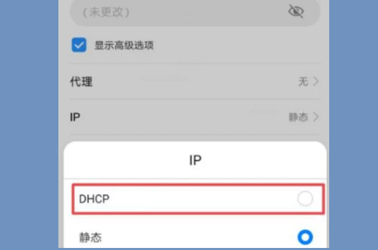 进入网络修改界面之后,勾选“显示高级选项”后显示出ip,将ip的静态状态改变为“DHCP”之后保存就可以了。
