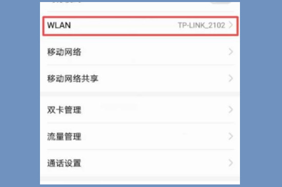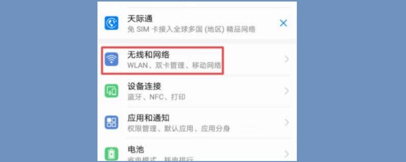 进入华为手机的设置页面,下拉页面之后找到“无线和网络”选项,点击进入并找到“WLAN”这个选项,进入内部的网络设置。