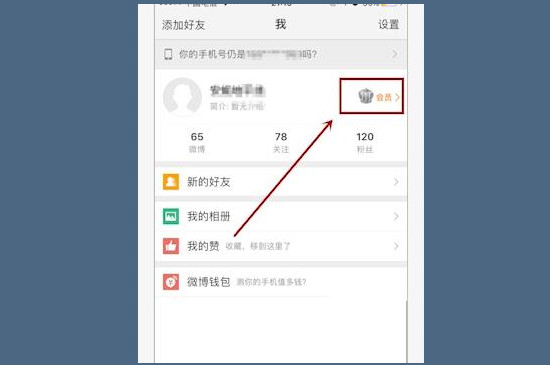 进入个人主页之后找到微博头像,此时微博头像的右边会有“会员”显示,点击并打开会员之后进入跳转页面。