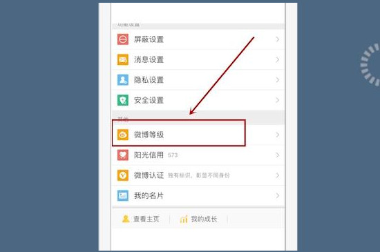 进入会员设置之后可以看到很多会员相关的功能,此时下拉页面之后找到“微博等级”选项,点击微博等级并进入跳转页面。