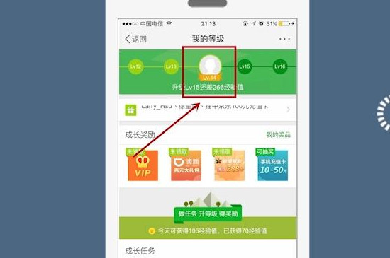 在显示页面中可以看到目前微博的等级,并且系统还会显示差多少经验可以升级,因此能做一些任务快速升级。