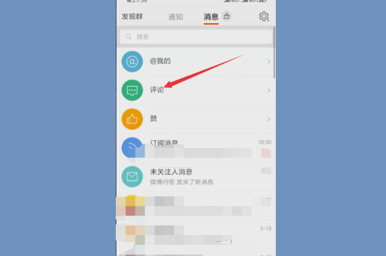 等待页面跳转之后进入微博消息通知,此时可以看到评论、私信、赞以及其他功能,点击“评论”选项之后并进入跳转页面。