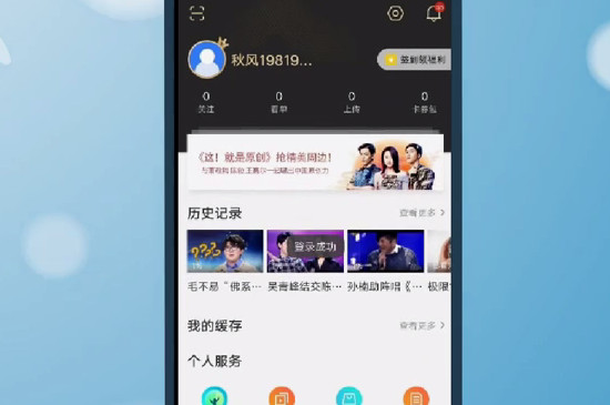 进入优酷的主页面之后,点击右上角“我的”,此时就可以进入优酷视频的个人中心,可以根据功能进行个人主页的设置。