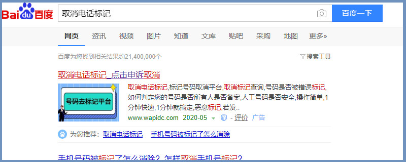 打开百度网页之后,搜索取消电话标记,之后点击网页并进入平台,此时就可以根据需求选择是个人电话还是企业电话。