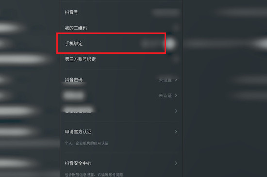 进入抖音设置之后,在账号栏目框内找到并点击“账号与安全”选项,继续点击页面并选择“手机绑定”选项。