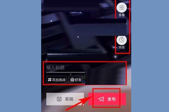 此时在抖音上传了视频之后,会进入抖音视频的编辑页面,根据视频的内容填写描述以及其他信息,最后点击“发布”就可以发布视频。
