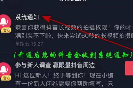 坚持发布高质量的视频就会收到抖音团队的消息,打开消息通知之后,可以在附带的网址内发布5分钟的长视频。