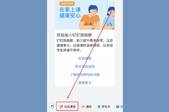 建立群聊之后打开班级群,此时可以在群聊页面找到下方显示的“在线课堂”,点击在线课堂之后等待页面的跳转。