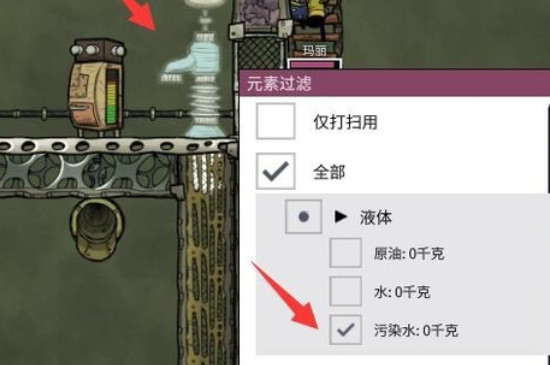 打开缺氧游戏界面之后点击下方工具栏,点击地面上的污水之后选择“打扫”功能就可以把污染水装入瓶子里,变成瓶装的污染水。