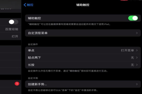 进入触控设置后点击“辅助触控”,将辅助触控前面的绿色按钮打开之后,会发现屏幕上出现了一个小方框。