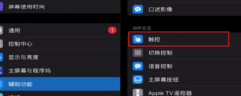 打开苹果平板之后点击设置,在设置页面下拉后点击“通用”,找到辅助功能之后点击动作交互中的“触控”选项并进入触控设置。