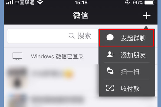 打开微信之后点击主页右上角的加号,此时会弹出会话框,点击其中的“发起群聊”就可以打开微信的群聊功能。