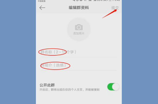 进入跳转页面之后点击页面上方的“新建一个群”,根据系统提示填写相关的群名称、群简介以及图片后点击“提交”,此时就可以创建群聊,还可以把群聊保存在微博信息页面,这样群聊的时候更方便。