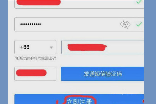 填写手机号之后需要用短信进行下一步验证,点击“发送短信验证码”之后,把短信内的数字输入进验证框之后点击“立即注册”即可。