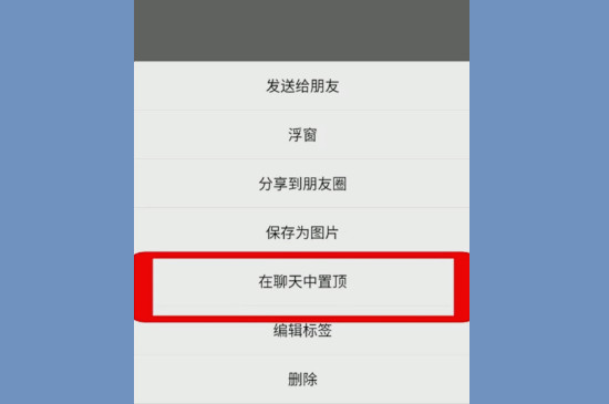 输入完毕后点击右上方的三个点,此时系统会有会话框弹出,点击并选择“在聊天中置顶”,选择完毕后退出聊天界面就可以看到刚才输入的语录已经置顶微信。